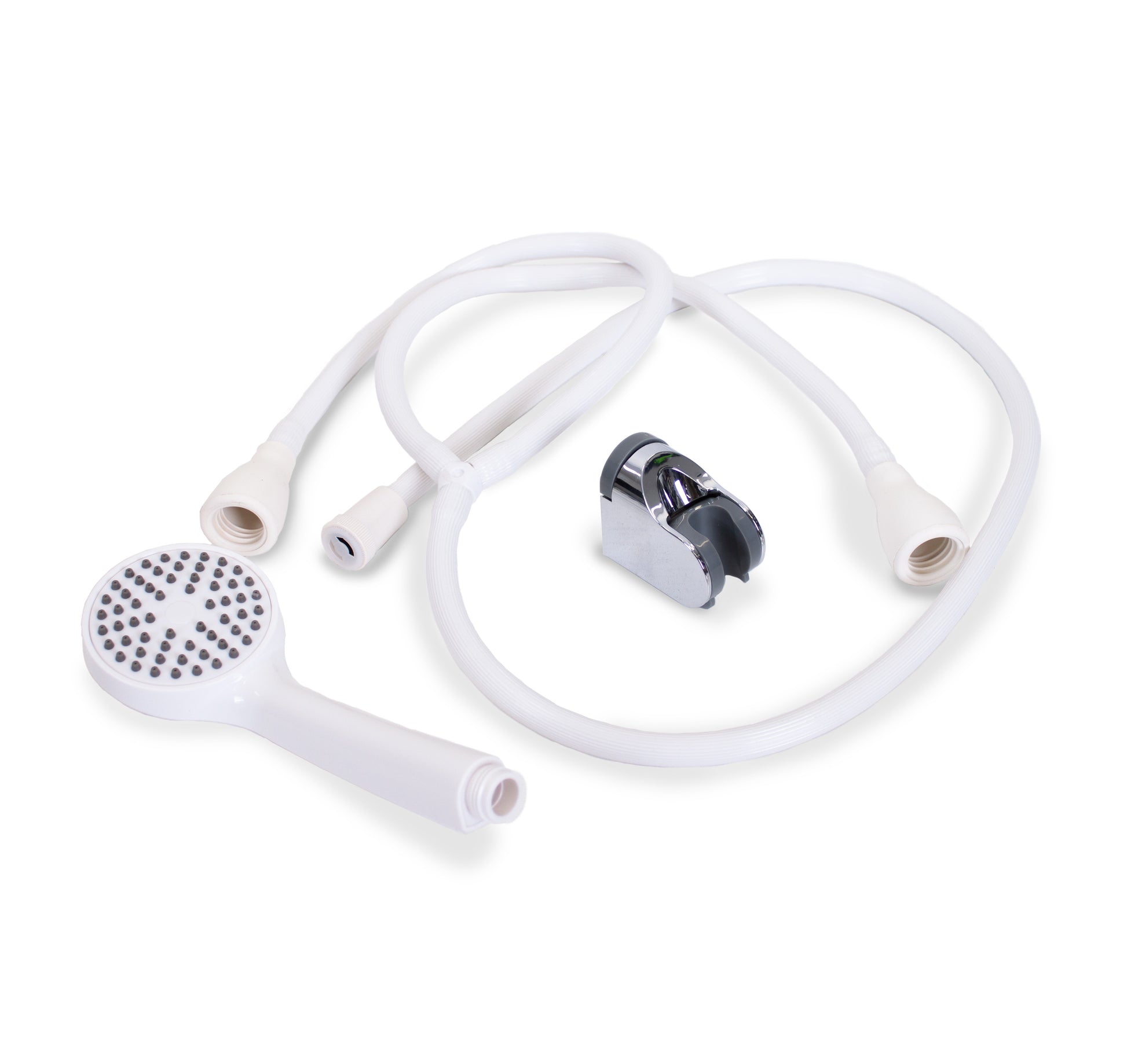 The convenient push-on connectors make installation effortless, allowing you to enjoy a refreshing shower directly from your bath without complicated setup. For use on two taps, this practical solution brings comfort and flexibility to your daily routine. Comes with wall bracket.